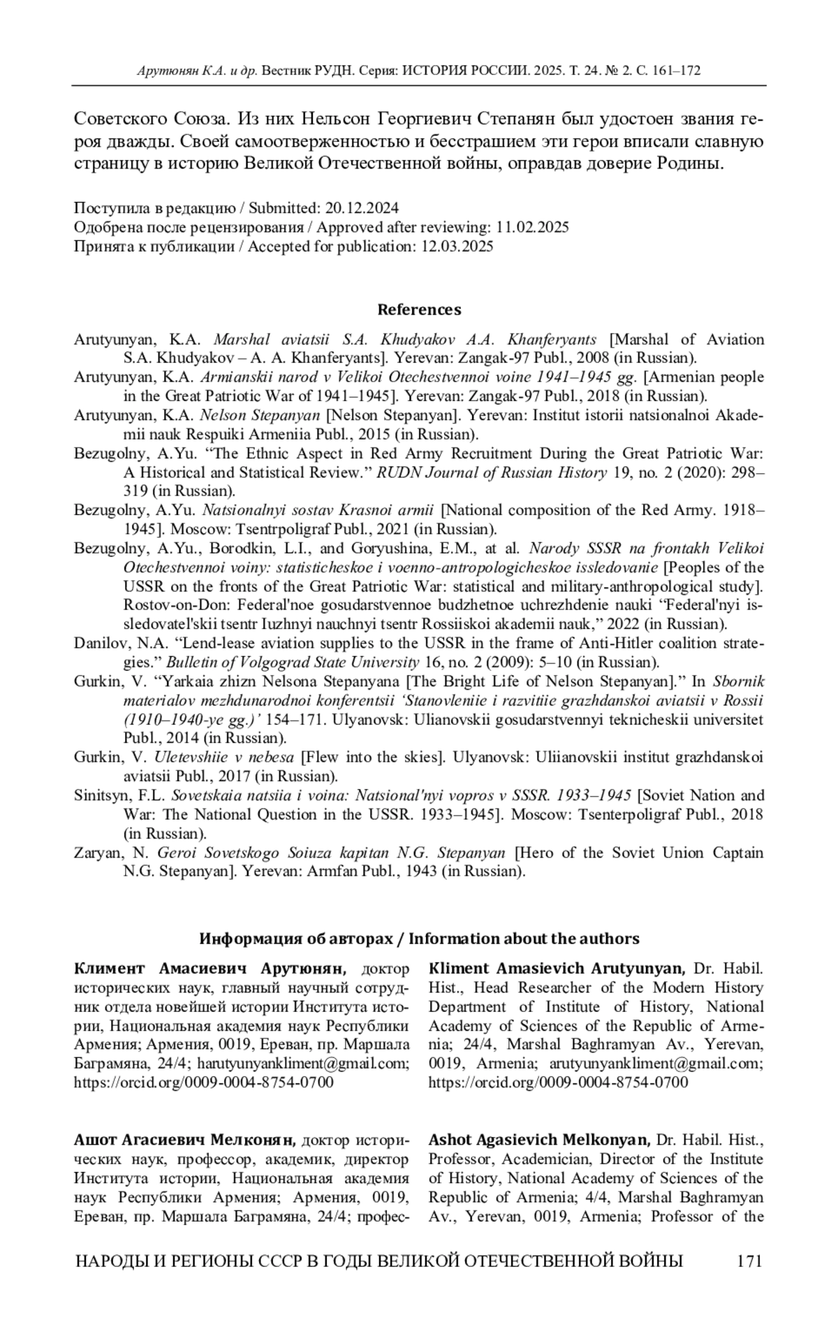 7. Гуркин В. Яркая жизнь Нельсона Степаняна // Сборник материалов международной конференции “Становление и развитие гражданской авиации в России (1910-1940-е гг.)”. Ульяновск: Ульяновский государственный технологический университет, 2015. С. 154-171. EDN: UWHBEF