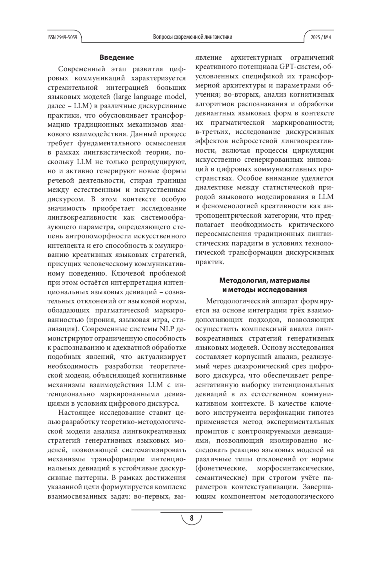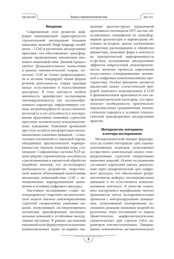 Современный этап развития цифровых коммуникаций характеризуется стремительной интеграцией больших языковых моделей (large language model, далее – LLM) в различные дискурсивные практики, что обусловливает трансформацию традиционных механизмов языкового взаимодействия.