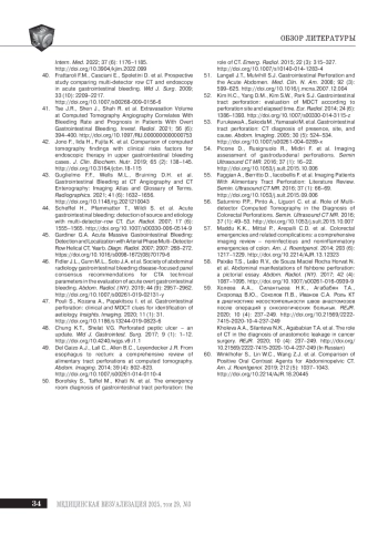 56. Faggian A., Berritto D., Iacobellis F. et al. Imaging Patients With Alimentary Tract Perforation: Literature Review. Semin. Ultrasound CT MR. 2016; 37 (1): 66-69. DOI: 10.1053/j.sult.2015.09.006