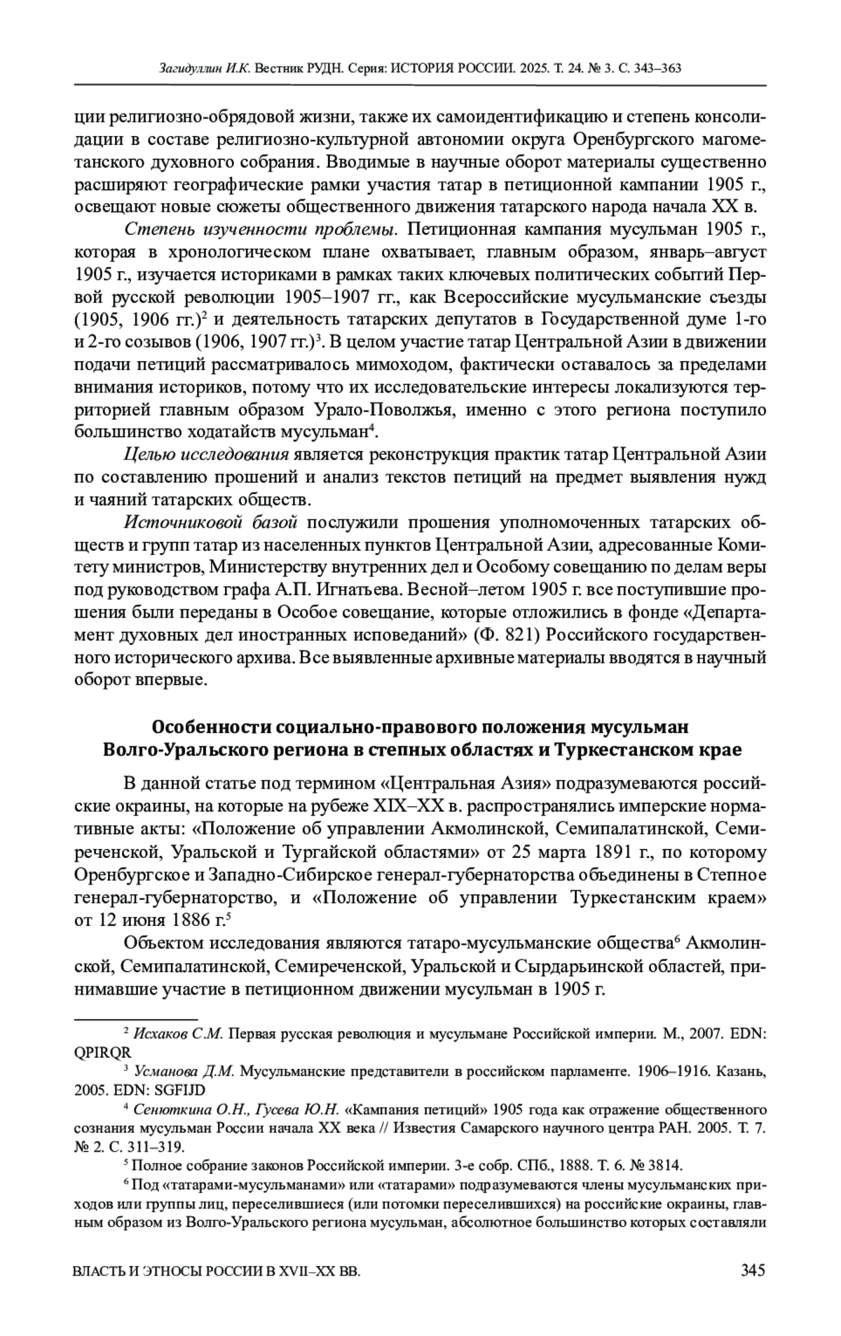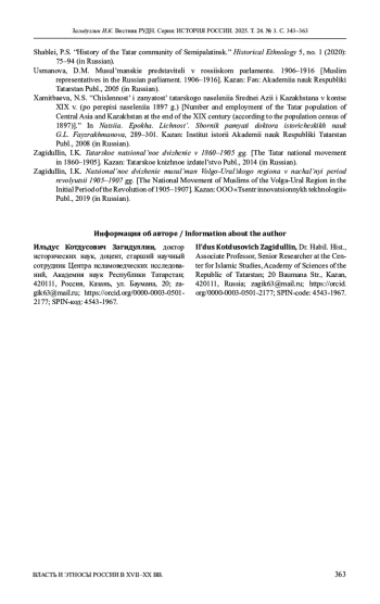 4. Загидуллин И.К. Национальное движение мусульман Волго-Уральского региона в начальный период революции 1905-1907 гг. Казань: ООО “Центр инновационных технологий”, 2019. 255 с.
