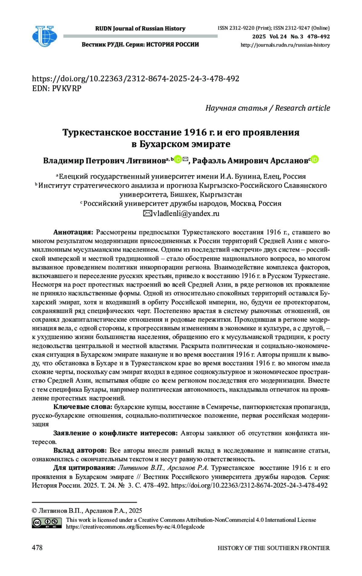 18. Усмонов Н.Н. События 1916 года: не назревшая революция или национально-освободительная борьба // Вестник Педагогического университета. 2018. № 4. С. 242-249. EDN: NJONBE