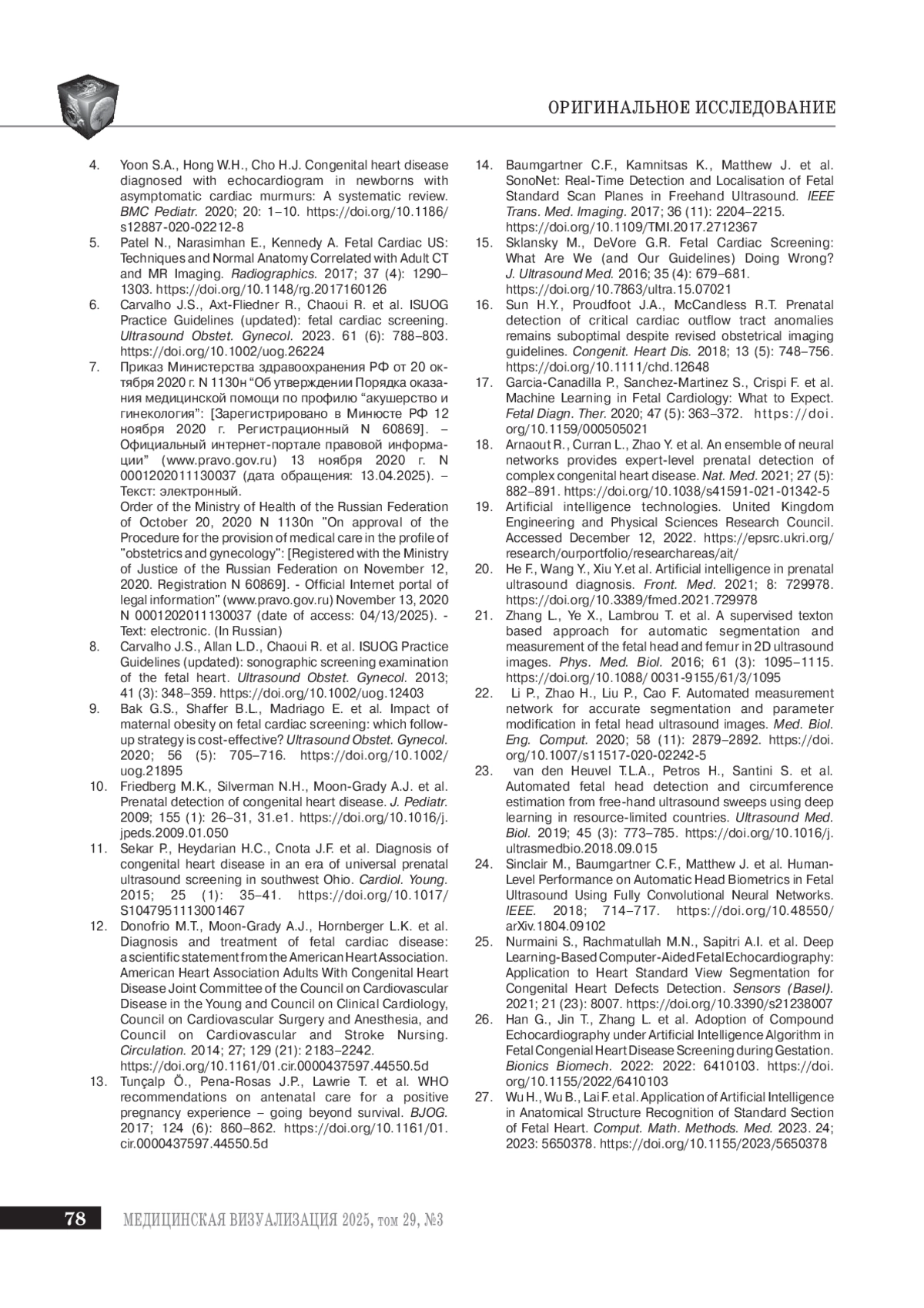 27. Wu H., Wu B., Lai F. et al. Application of Artificial Intelligence in Anatomical Structure Recognition of Standard Section of Fetal Heart.Comput. Math. Methods. Med. 2023. 24; 2023: 5650378.