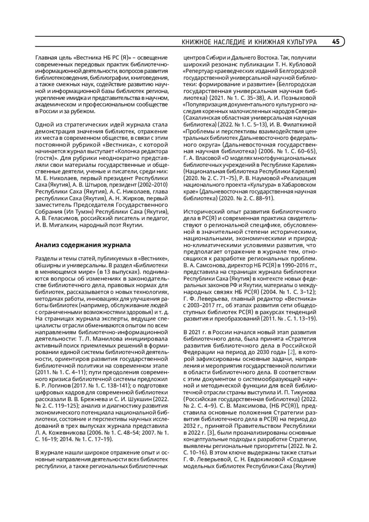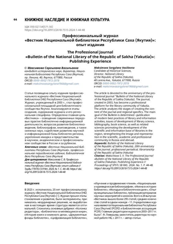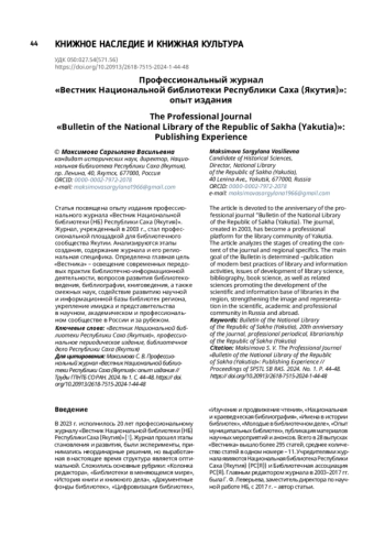 1. Вестник Национальной библиотеки Республики Саха (Якутия) : проф. журн. Якутск : Нац. б-ка Респ. Саха (Якутия), 2003- .