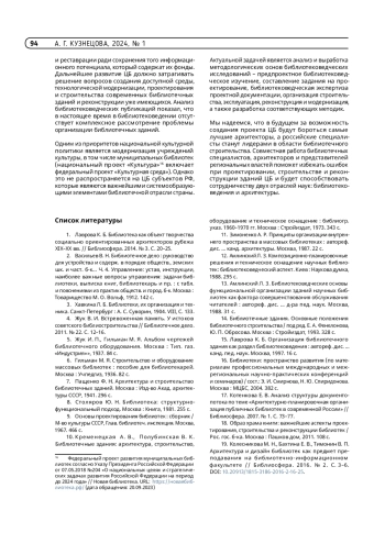 17. Котенкова Е. В. Анализ структуры документопотока по теме «Архитектурно-планировочная организация публичных библиотек в современной России» // Библиосфера. 2007. № 1. С. 73-77.