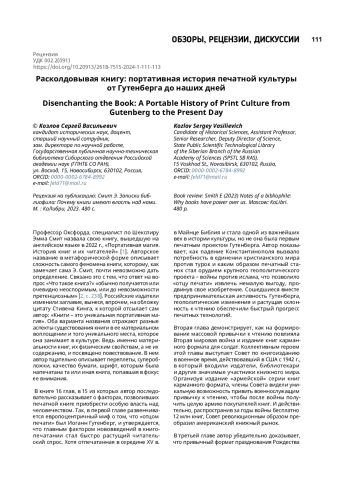 Рецензия на публикацию: Смит Э. Записки библиофила: Почему книги имеют власть над нами. М.: КоЛибри, 2023. 480 с