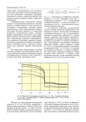 1. На основе математической модели выявлен радиальный профиль цезиевого разряда, ограниченного системой из двух сапфировых оболочек, рассчитан энергетический баланс излучения и конвективного теплосъема при различных уровнях электрической мощности разряда и коэффициентах теплоотдачи с поверхности лампы.