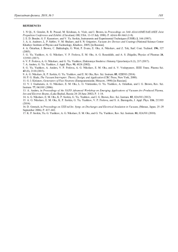14. Nikolaev A. G., Oks E. M., Savkin K. P., Yushkov G. Yu., Brown I. G. // Rev. Sci. Instrum. 2012. Vol. 83. No. 2 (1). P. 02A501.
