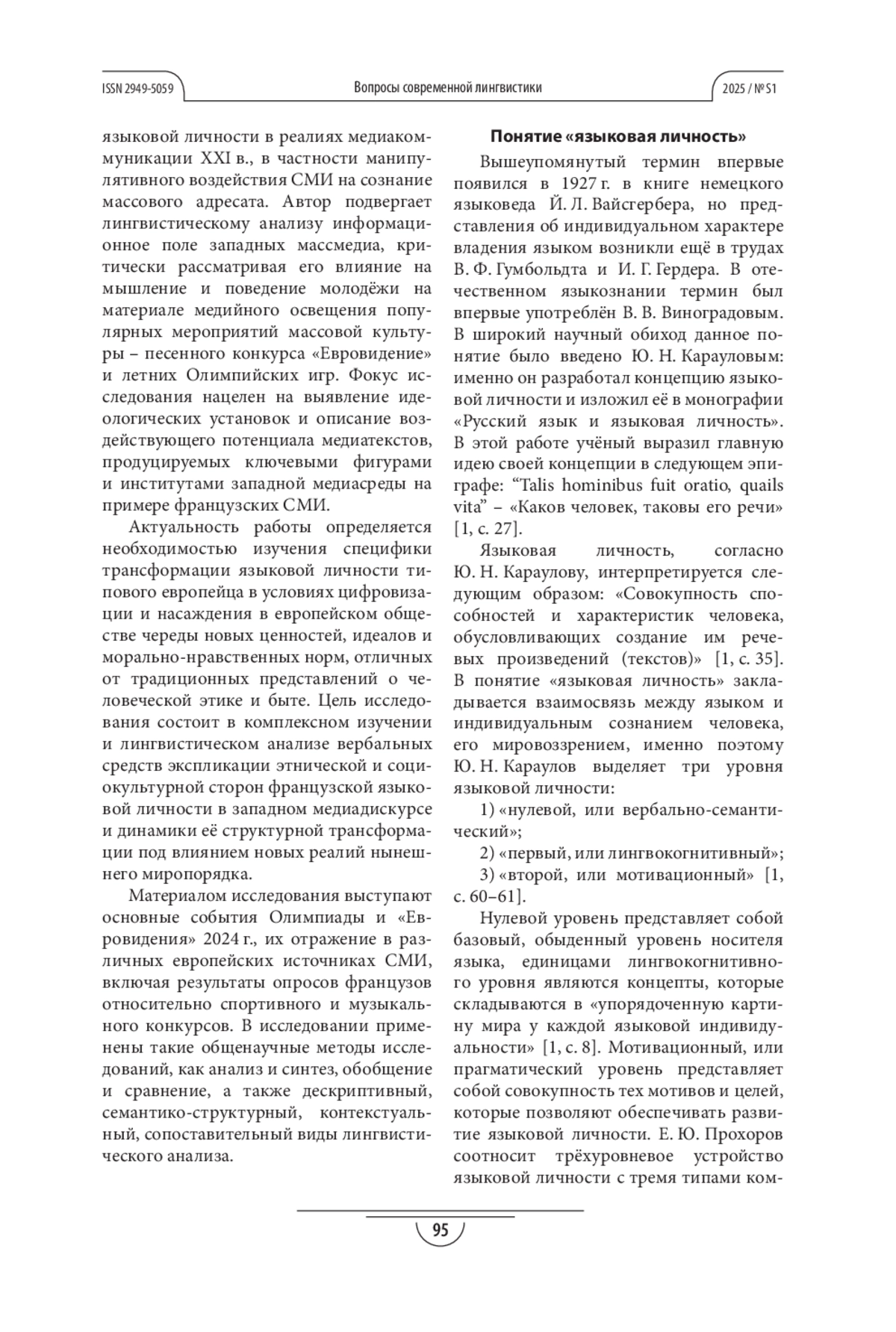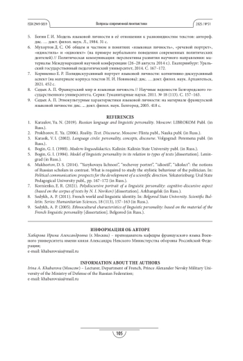 ХАБАРОВА И. А. ТРАНСФОРМАЦИЯ ФРАНЦУЗСКОЙ ЯЗЫКОВОЙ ЛИЧНОСТИ В СОЦИОКУЛЬТУРНЫХ РЕАЛИЯХ XXI ВЕКА // ВОПРОСЫ СОВРЕМЕННОЙ ЛИНГВИСТИКИ. 2025. № S1