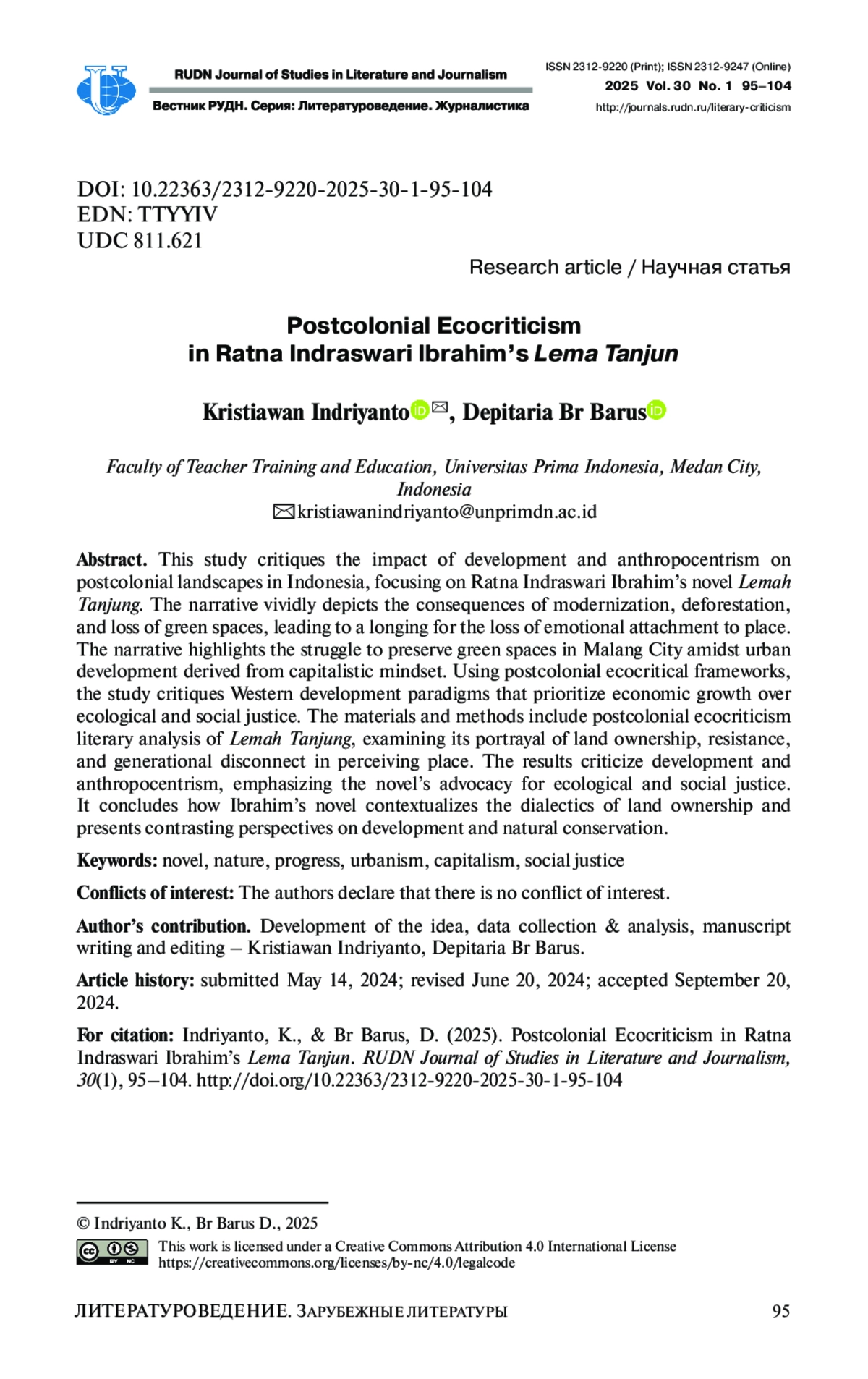 13. Li, R., & Ryan, J.C. (2018). Sowing Seeds: Phytocriticism and the Botanical Dimensions of Indonesian Literature for Children and Young Adults. In J.C. Ryan (Ed.), Southeast Asian Ecocriticism: Theories, Practices, Prospects (pp. 229-251). Lexington Books. DOI: 10.5040/9781501305221.ch-004