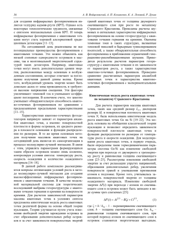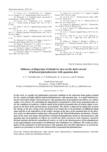 Войцеховский А. В., Коханенко А. П., Лозовой К. А., Духан Р. Влияние разброса размеров наноостровков на темновой ток фотоприемников с квантовыми точками 35