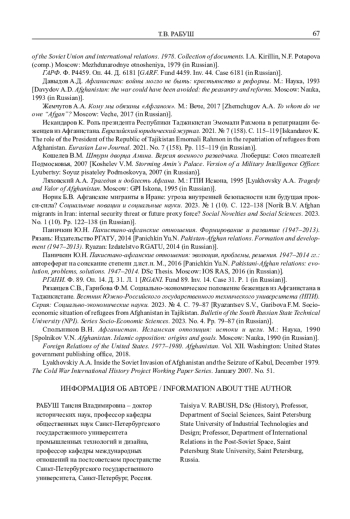 23. Искандаров К. Роль президента Республики Таджикистан Эмомали Рахмона в репатриации беженцев из Афганистана. Евразийский юридический журнал. 2021. № 7 (158). С. 115-119.