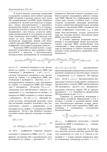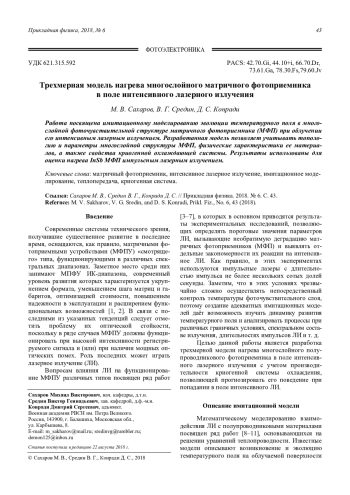 Сахаров М. В., Средин В. Г., Конради Д. С. Трехмерная модель нагрева многослойного мат-ричного фотоприемника в поле интенсивного лазерного излучения 43