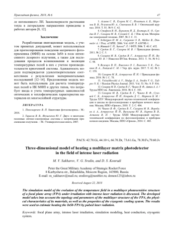 M. V. Sakharov, V. G. Sredin, and D. S. Konradi Three-dimensional model of heating a multilayer matrix photodetector in the field of intense laser radiation 43
