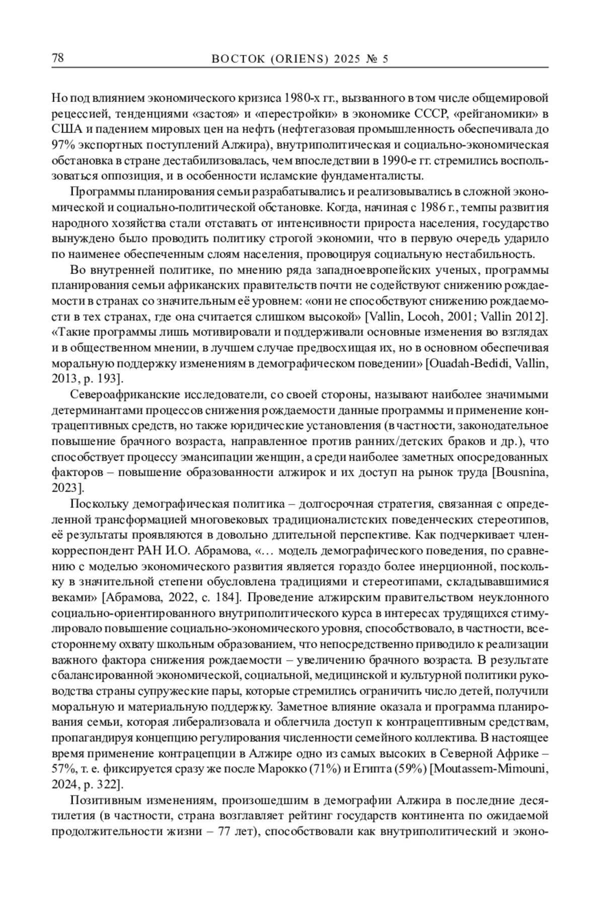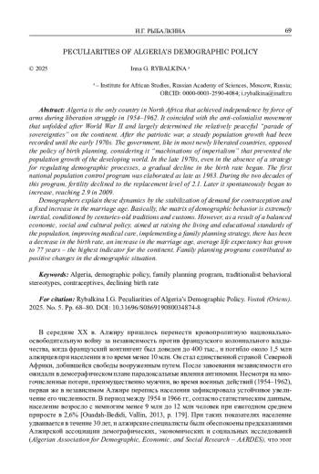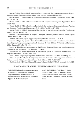 18. Ouadah-Bedidi Z., Vallin J. Fertility and Population Policy in Algeria: Discrepancies between Planning and Outcomes. Population and Development Review. 2013. Vol. 38. Pp. 179-196.