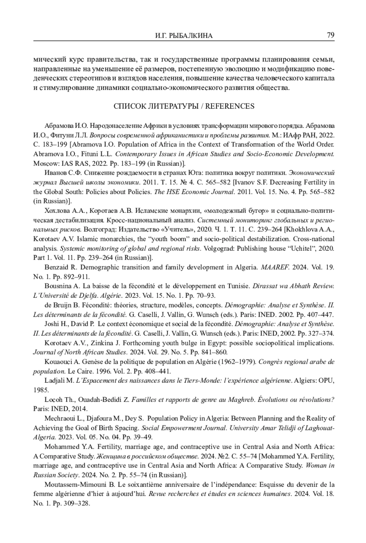 4. Benzaid R. Demographic transition and family development in Algeria. MAAREF. 2024. Vol. 19. No. 1. Pp. 892-911.