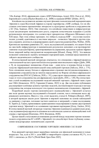 Вовлечение Африки в глобальную экономику обусловливает рост научного интереса к тематике торгово-экономических связей отдельных стран и континента в целом. Так, авторы из КНР исследуют трансферты рабочей силы с Африкой и их влияние на глобальные цепочки поставок [Ji et al., 2024], влияние китайских инвестиций на расширение торговли с континентом [Zhang et al., 2022]. Европейские ученые проводят оценку влияния торговых соглашений [Cipollina, 2022].