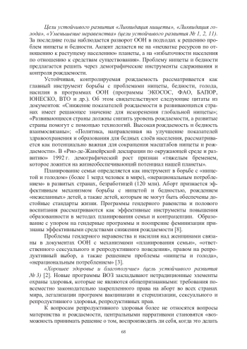Устойчивая, контролируемая рождаемость рассматривается как главный инструмент борьбы с проблемами нищеты, бедности, голода, насилия в программах ООН (программы ЭКОСОС, ФАО, БАПОР, ЮНЕСКО, ВТО и др.). Об этом свидетельствуют следующие цитаты из документов: «Снижение показателей рождаемости в развивающихся странах имеет решающее значение для искоренения глобальной нищеты»; «Развивающиеся страны должны снизить уровень рождаемости, а развитые страны помогут с помощью технологий. Высокая рождаемость и бедность взаимосвязаны»; «Политика, направленная на улучшение показателей здравоохранения и образования для бедных слоёв населения, рассматривается как потенциально важная для сокращения масштабов нищеты и рождаемости». В «Рио-де-Жанейрской декларации по окружающей среде и развитию» 1992 г. демографический рост признан «тяжелым бременем, которое ложится на жизнеобеспечивающий потенциал нашей планеты».