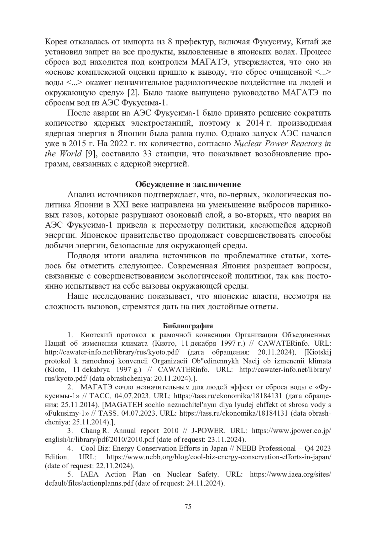 2. МАГАТЭ сочло незначительным для людей эффект от сброса воды с “Фукусимы-1” // ТАСС. 04.07.2023. URL: https://tass.ru/ekonomika/18184131 (дата обращения: 25.11.2014).