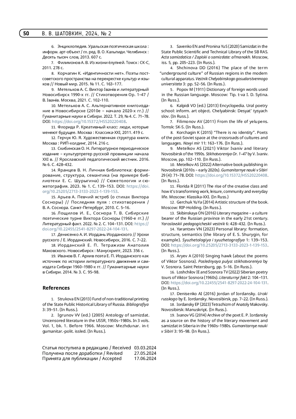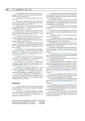 16. Лощилов И. Е., Соснора Т. В. Сибирские поэтические турне Виктора Сосноры (1960-е гг.) // Литературный факт. 2022. № 2. С. 104 -131. https://doi.org/10.22455/2541-8297-2022-24-104-131.