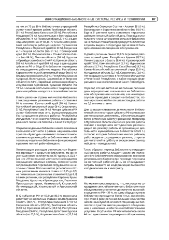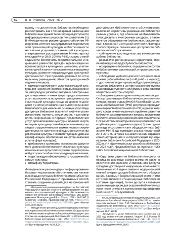 8. Доступность услуг библиотек для населения // Ежегодный доклад о состоянии сети общедоступных библиотек Российской Федерации: по итогам мониторинга 2020 года. Санкт-Петербург, 2021. С. 46-49.