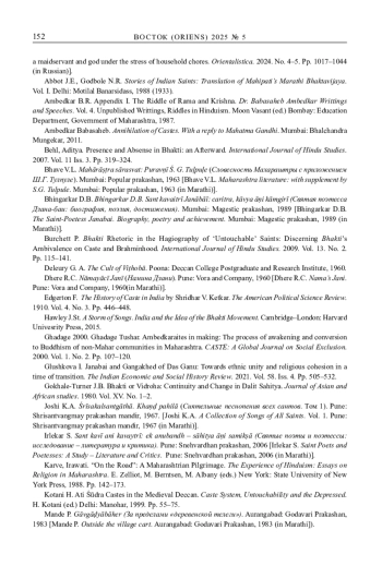 19. Gokhale-Turner J.B. Bhakti or Vidroha: Continuity and Change in Dalit Sahitya. Journal of Asian and African studies. 1980. Vol. XV. No. 1-2.