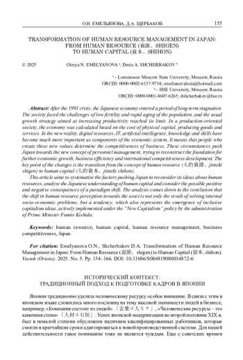 В настоящей статье ставятся задачи систематизации факторов, подталкивающих Японию к пересмотру представлений о человеческом ресурсе, анализа японского понимания человеческого капитала и выявления возможных положительных и негативных последствий смены парадигмы. Кроме того, авторами предпринята попытка показать, что помимо решения внутренних социально-экономических проблем, сдвиг восприятия человека в качестве «капитала» или «актива» является воплощением западных идей инклюзивного капитализма, которые начали активно реализовываться в японском обществе с началом проведения политики «Нового капитализма» правительства Кисида Фумио. Такое следование стратегическим задачам «глобального севера» проявляет зависимость Японии от Запада в вопросах долгосрочного планирования развития страны.