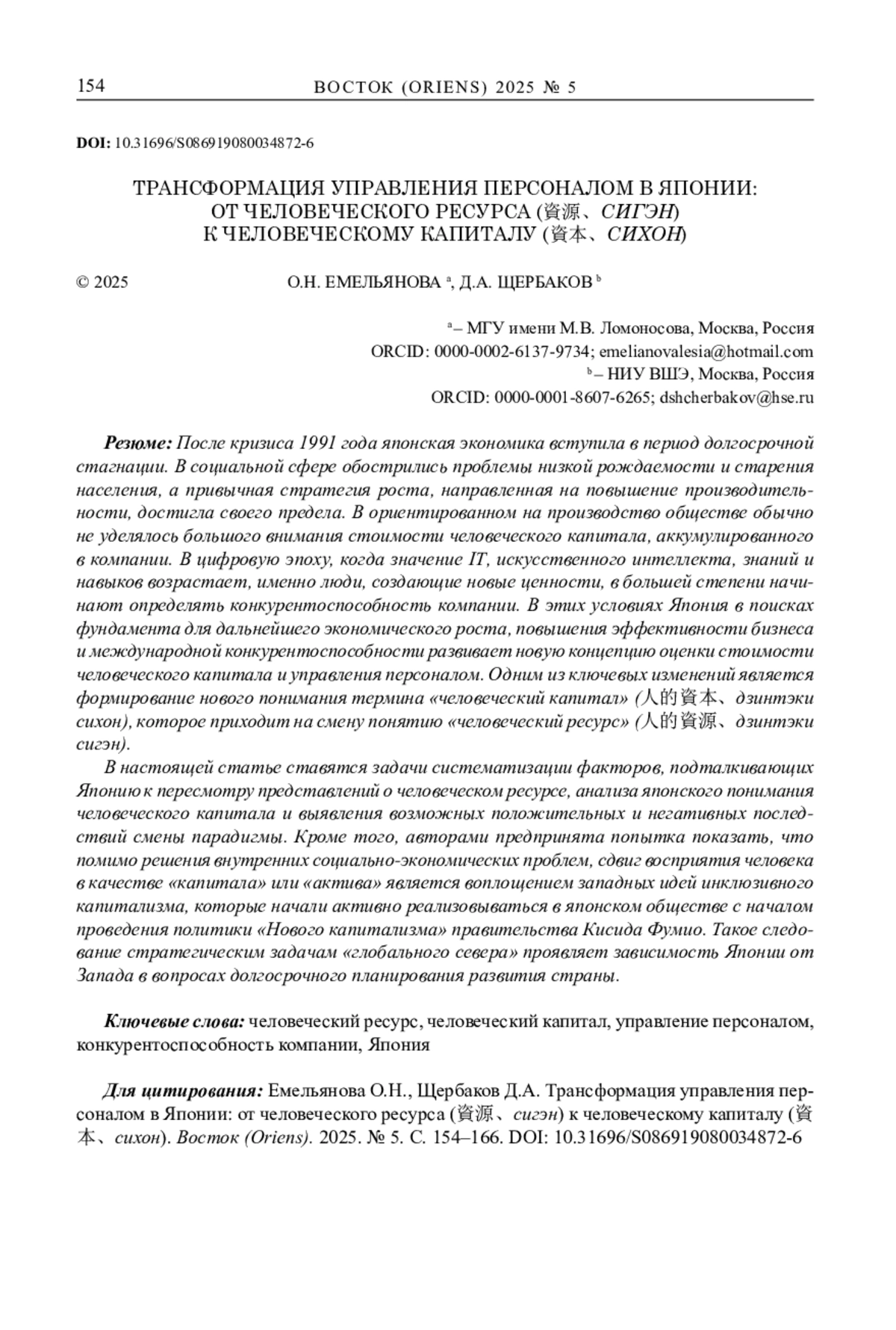 6. Дзинтэки сихон кэйэй но мираи - гэндзё: но кайдай то конго но кано:сэй - (Будущее управления человеческим капиталом: текущие проблемы и будущие возможности; 人的資本経営の未来 -現状の課題と今後の可能性-). NRI, 2024 (на японском языке) https://www.nri.com/jp/knowledge/report/2024forum369.html (дата обращения: 10.04.2025).