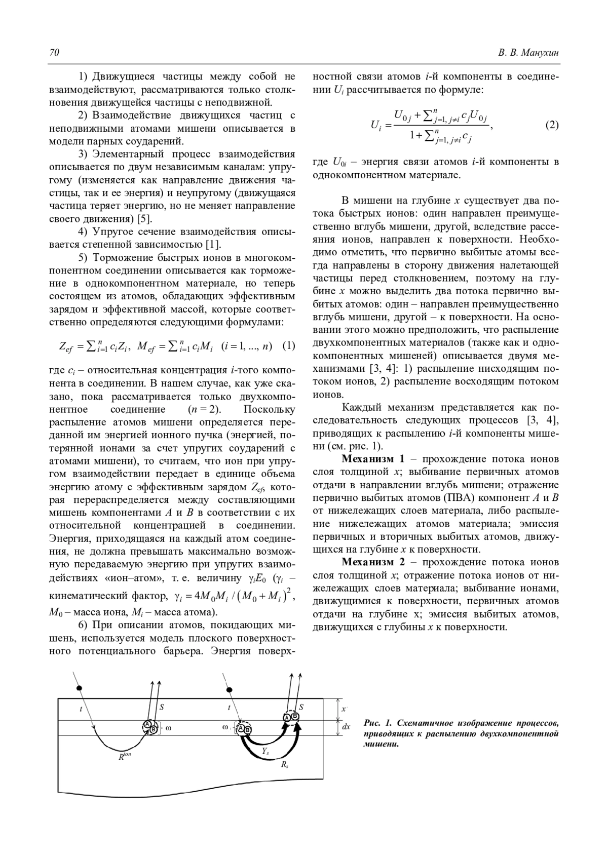 Манухин В. В. Распыление двухкомпонентных однородных мишеней легкими ионами 69