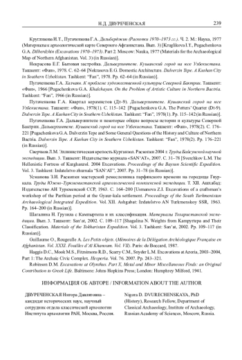 5. Кругликова И.Т., Пугаченкова Г.А. Дильберджин (Раскопки 1970-1973 гг.). Ч. 2. М.: Наука, 1977 (Материалы к археологической карте Северного Афганистана. Вып. 3).