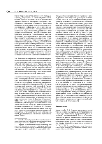 10. Кривков А. Л. К историографии и источниковедению книги М. Дулатова «Оян, қазақ!» // Қазіргі қоғамда мұрағат рөлі : халықаралық ғылыми-тәжірибелік конф. материалдары. Алматы, 2013. С. 176-182.