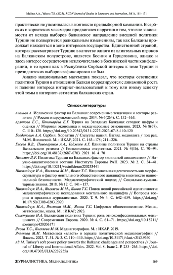 12. Ali M. Turkey’s soft power policy towards the Balkans: challenges and perspectives // Journal of Liberty and International Affairs. 2022. Vol. 8. Issue 2. P. 255-265. DOI: 10.47305/JLIA2282255a EDN: LVYJMO