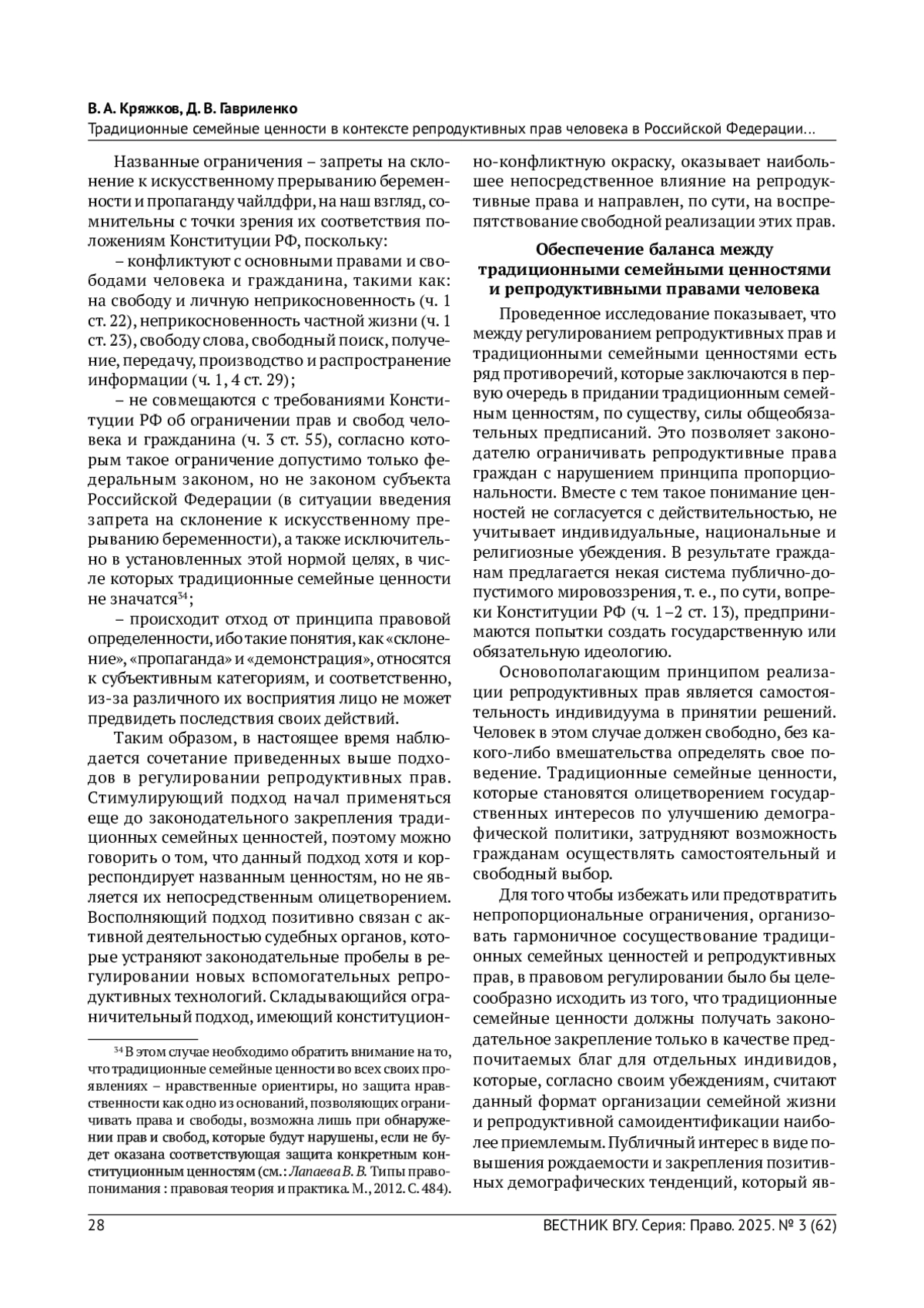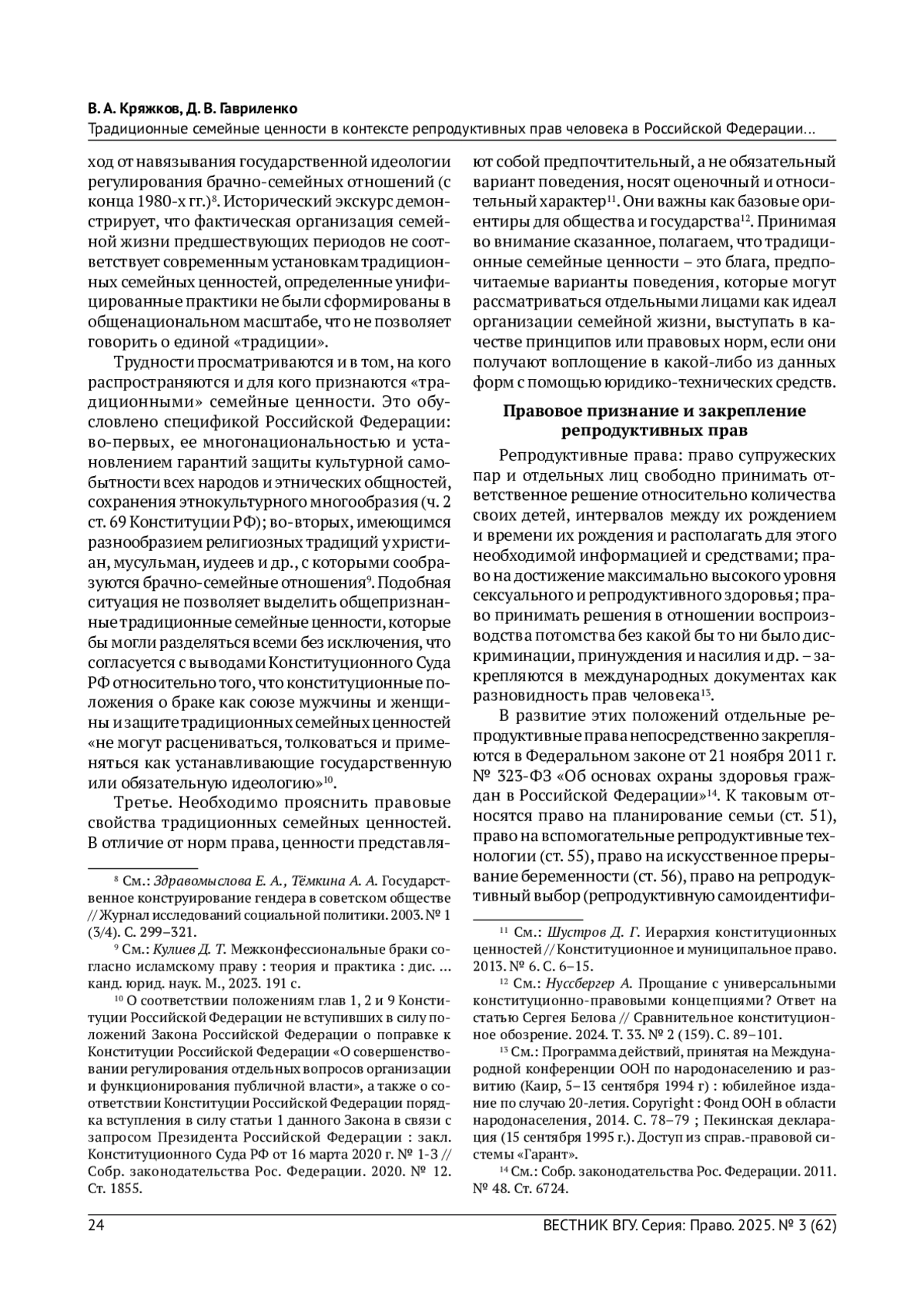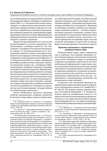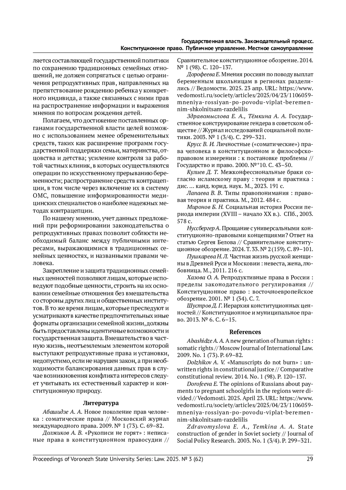 11. Хазова O. A. Репродуктивные права в России: пределы законодательного регулирования // Конституционное право: восточноевропейское обозрение. 2001. № 1 (34). С. 7.