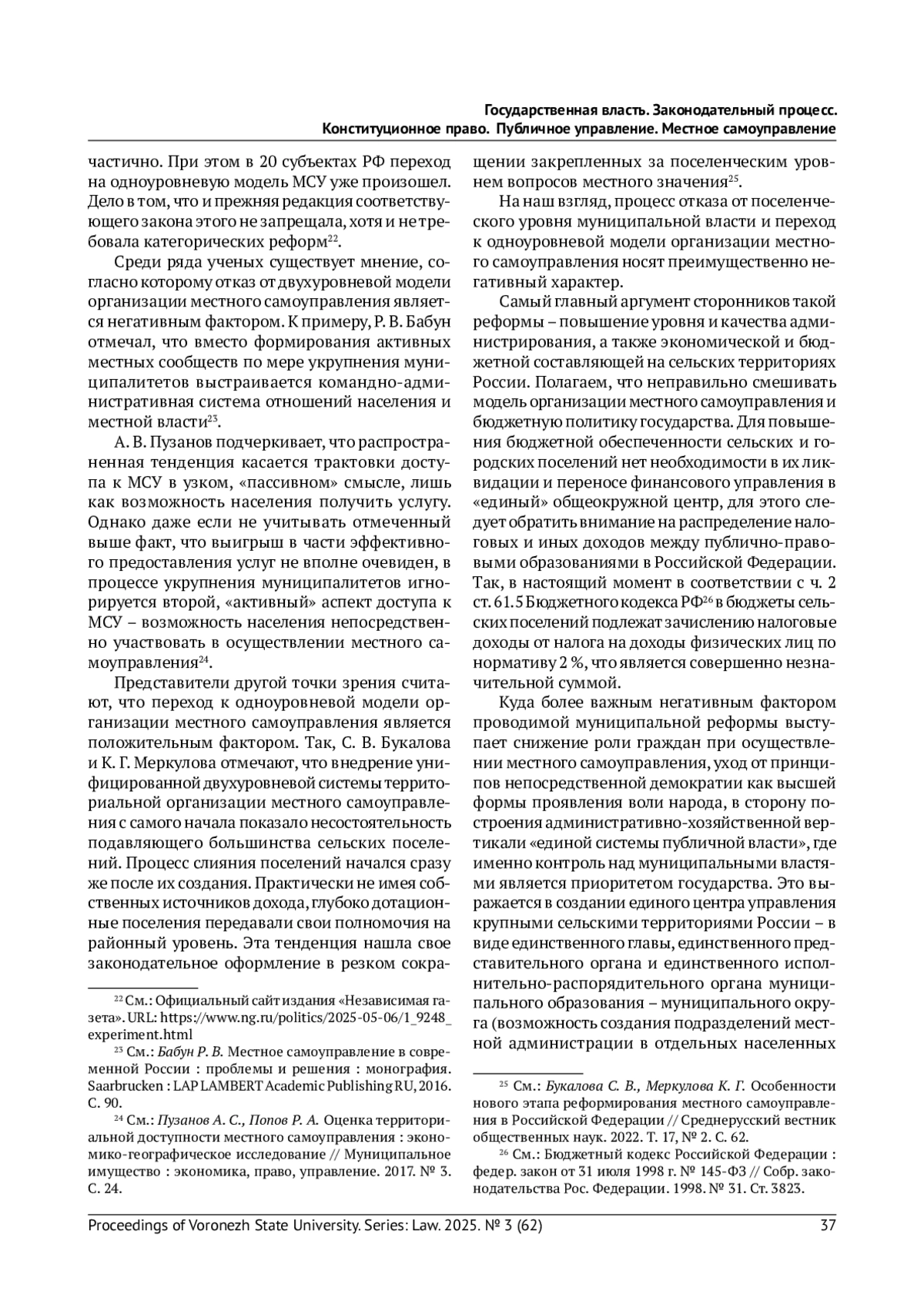 5. Гунина Т. Г. Переход на одноуровневую систему муниципальных образований: последствия для местного самоуправления // Oeconomia et Jus. 2022. № 2. С. 61-72. EDN: LUUNDV