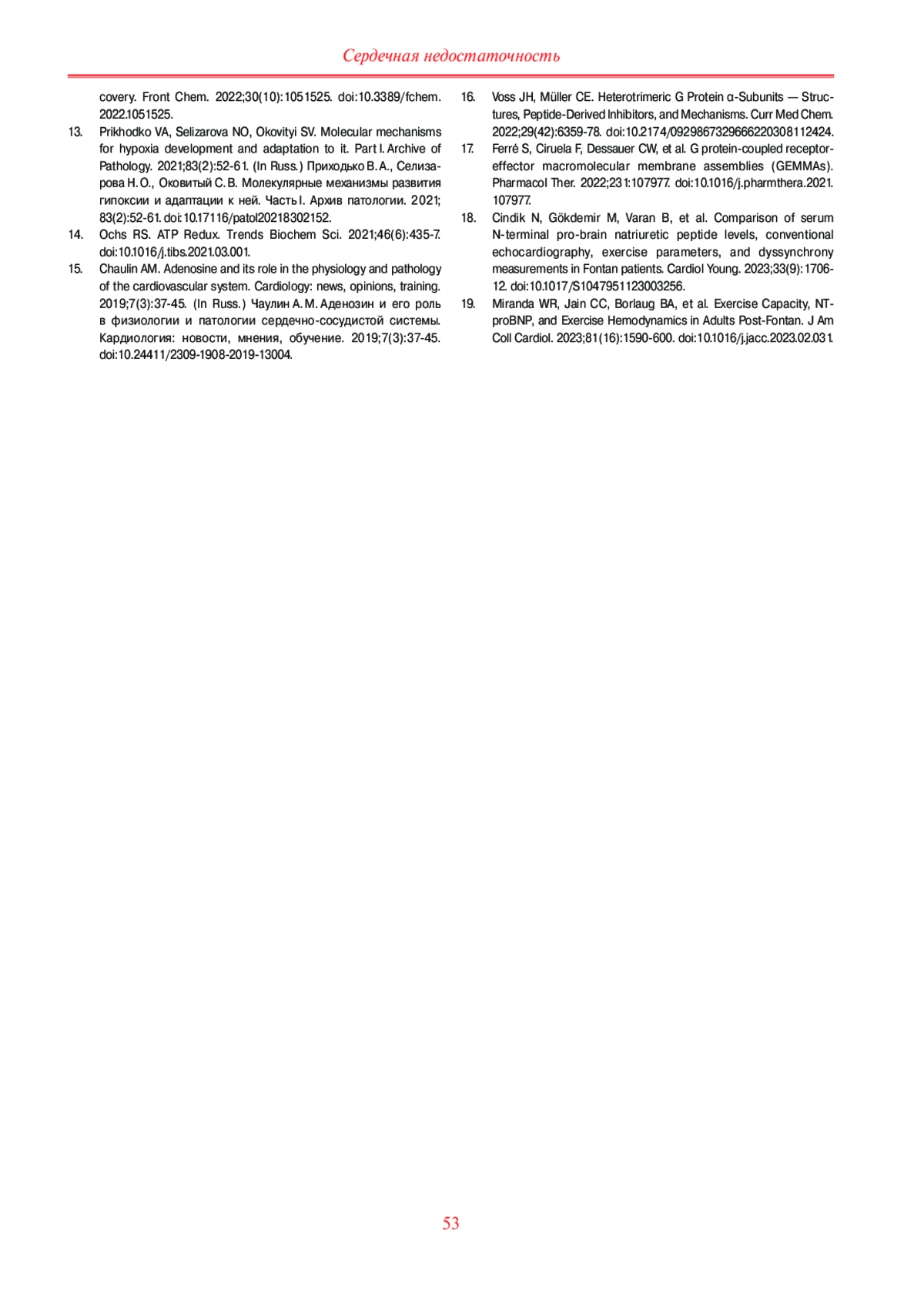 15. Чаулин А. М. Аденозин и его роль в физиологии и патологии сердечно-сосудистой системы. Кардиология: новости, мнения, обучение. 2019;7(3):37-45. DOI: 10.24411/2309-1908-2019-13004