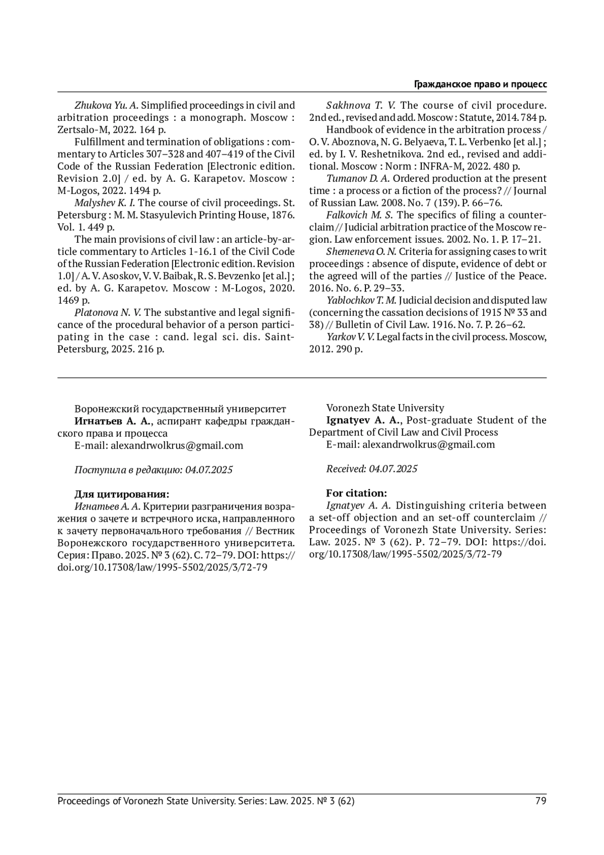 1. Абушенко Д. Б. Проблемы взаимовлияния судебных актов и юридических фактов материального права в цивилистическом процессе: дис.. д-ра юрид. наук. Екатеринбург, 2014. 415 с. EDN: OVMNRP