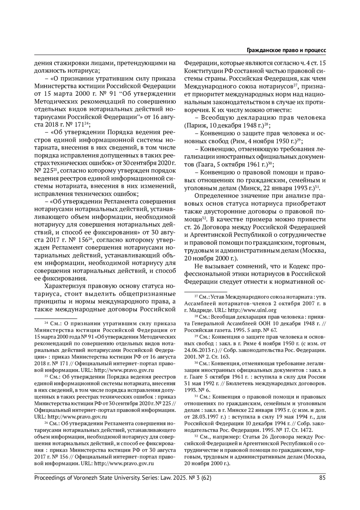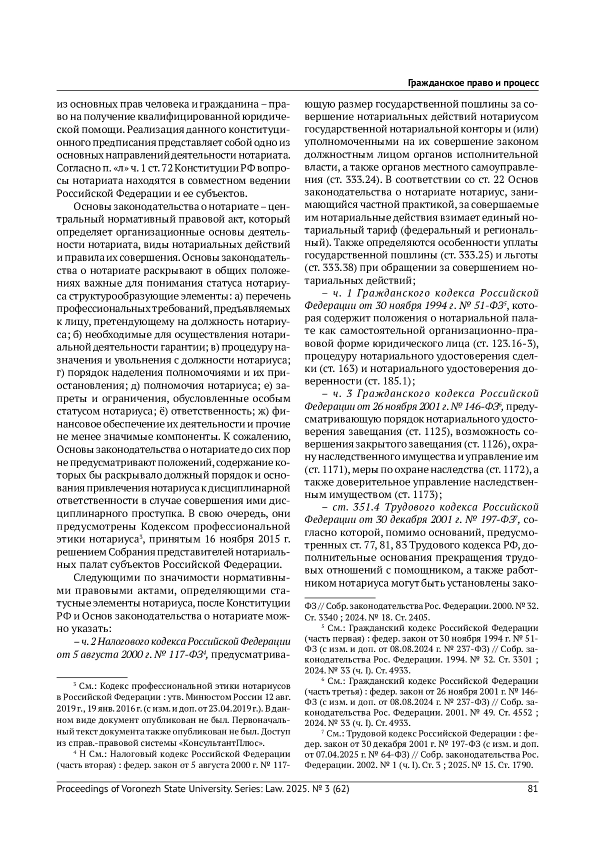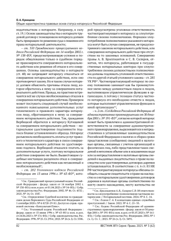 Статья: ОБЩАЯ ХАРАКТЕРИСТИКА ПРАВОВЫХ ОСНОВ СТАТУСА НОТАРИУСА В РОССИЙСКОЙ ФЕДЕРАЦИИ (2025)