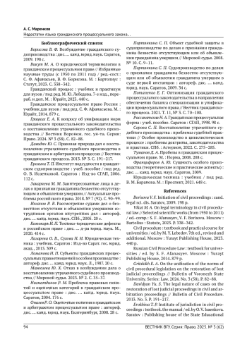 17. Портянкина С. П. Судопроизводство по делам о признании гражданина безвестно отсутствующим или об объявлении гражданина умершим в суде первой инстанции: автореф. дис.. канд. юрид. наук. Саратов, 2009. 34 с. EDN: NKSGVB