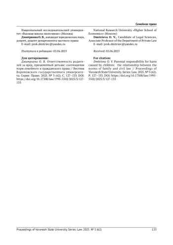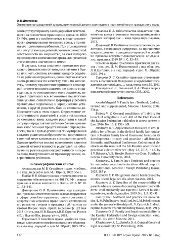 6. Рузанова Е. В. Особенности ответственности родителей, являющихся супругами, за причинение вреда их детьми: гражданско-правовой и семейно-правовой аспекты // Законы России: опыт, анализ, практика. 2019. № 1. С. 52-55. EDN: YYMVWH