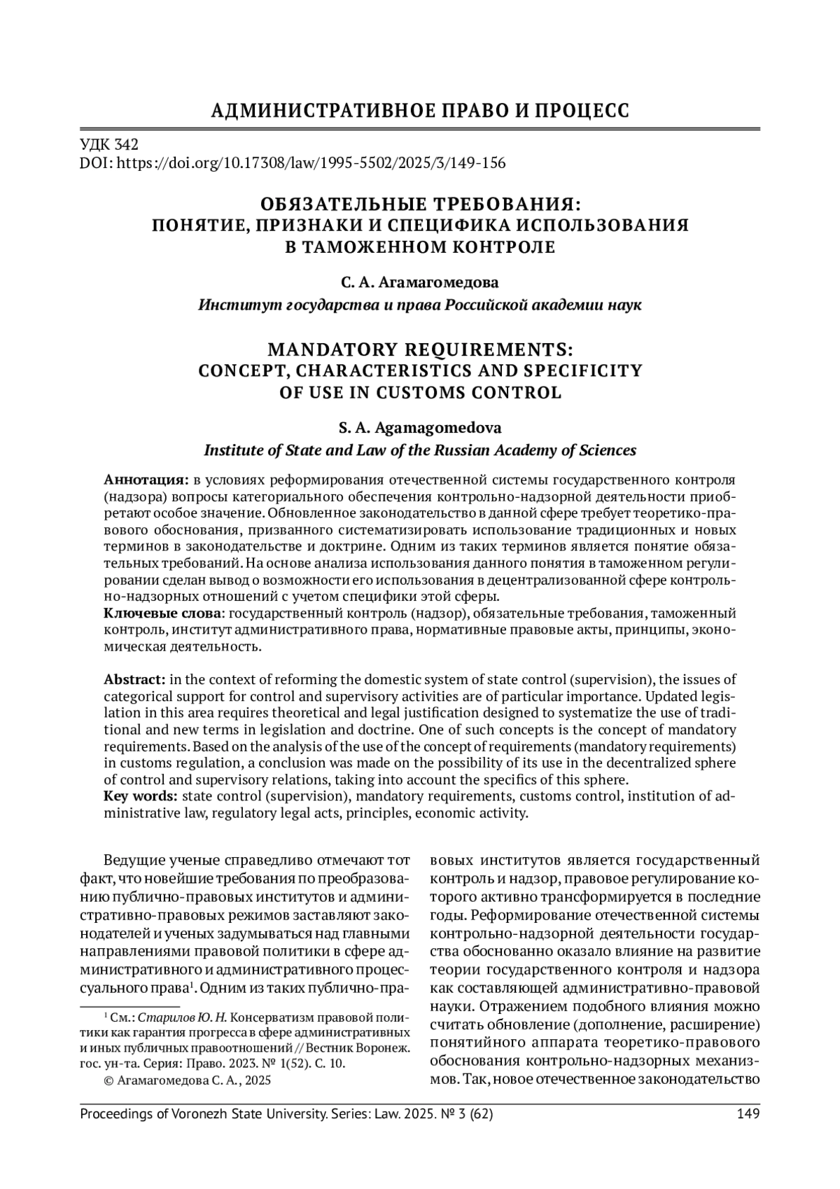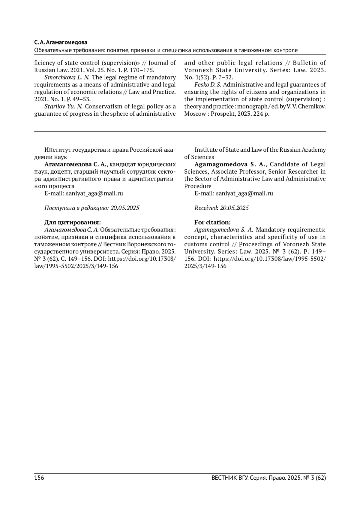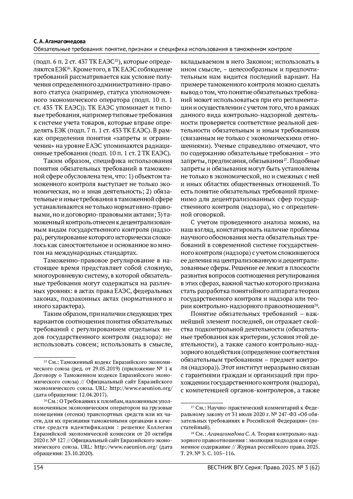 2. Агамагомедова С. А. Теория контрольно-надзорного правоотношения: эволюция подходов и современное содержание // Журнал российского права. 2025. Т. 29. № 3. С. 105-116. EDN: HEDNOE