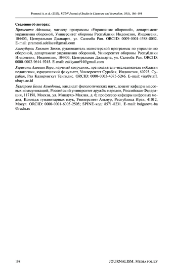 Shilina M. G. Mediatized popular culture in contemporary India: multipolar and multilayered reflections in everyday life: interview with Prof. Usha Raman // Вестник Российского университета дружбы народов. Серия: Литературоведение. Журналистика. 2025. Т. 30. № 1. С. 213–218. http://doi. org/10.22363/2312-9220-2025 30-1-213-218