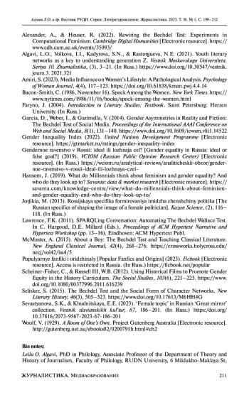 18. Sevastyanova, S.K., & Khudnitskaya, E.E. (2023). ‘Female topic’ in Russian ‘Great mirror’ collection. Vestnik slavianskikh kul’tur, 67, 186-201. (In Russ.) https:/. DOI: 10.37816/2073-9567-2023-67-186-201 EDN: ONCTFR
