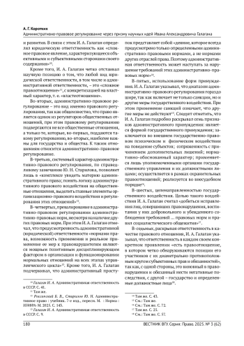 4. Гриценко В. В. Научные идеи Ивана Александровича Галагана об административной ответственности в контексте современных российских реформ // Вестник Воронеж. гос. ун-та. Серия Право.2022. № 4 (51). С. 230-242.