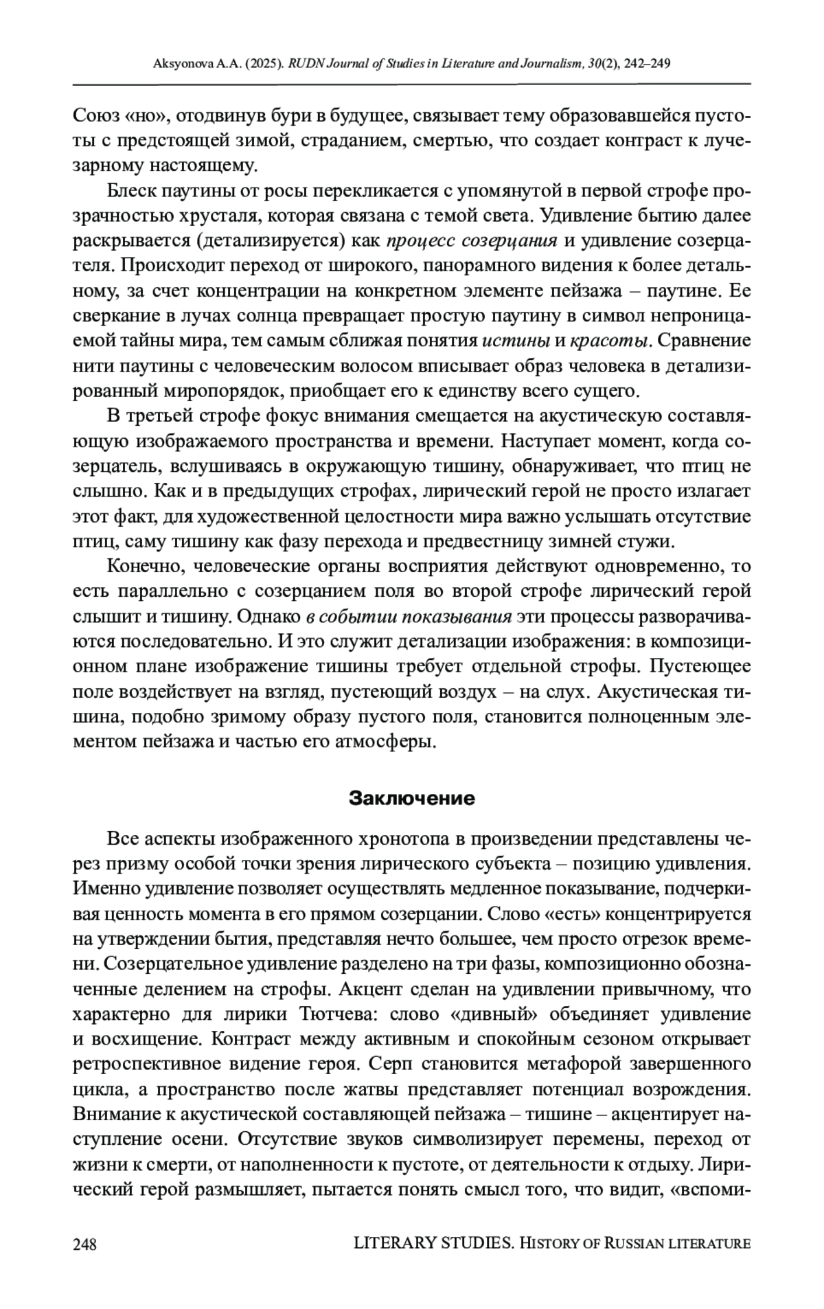 2. Абузова Н.Ю. Пространственно-временная модель в лирике Ф.И. Тютчева // Вестник Барнаульского государственного педагогического университета. 2008. № 8(2). С. 138-147.