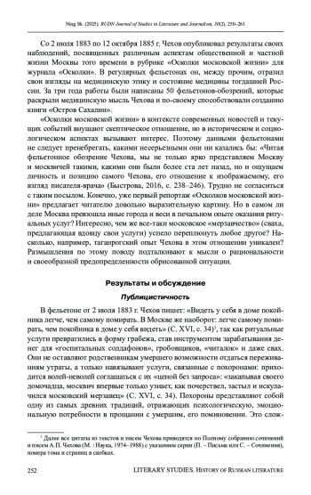 3. Быстрова Т.Е. “Осколки московской жизни” А.П. Чехова как энциклопедия Москвы первой половины 80-х годов XIX века (к вопросу о прецедентности) // Культура и цивилизация. 2016. Т. 6. № 5А. С. 238-246. EDN: YNAZCP