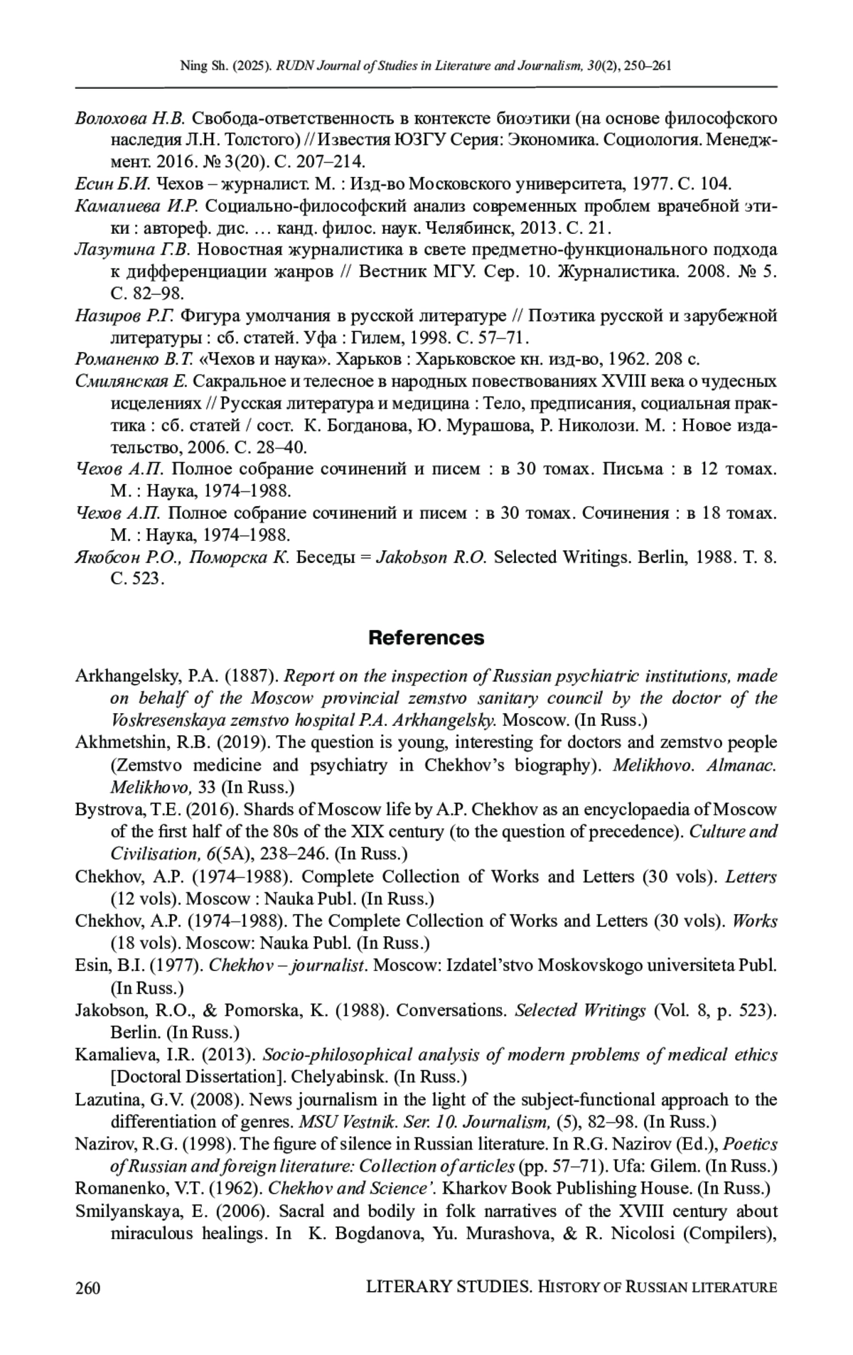 2. Ахметшин Р.Б. “Вопрос молодой, для врачей и земцев интересный” (Земская медицина и психиатрия в чеховской биографии) // Мелихово. Альманах. Мелихово, 2019. С. 33.