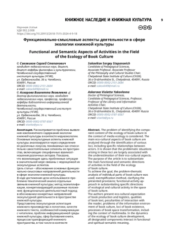 Цель статьи: обоснование основных функционально-смысловых направлений деятельности в сфере экологии книжной культуры.