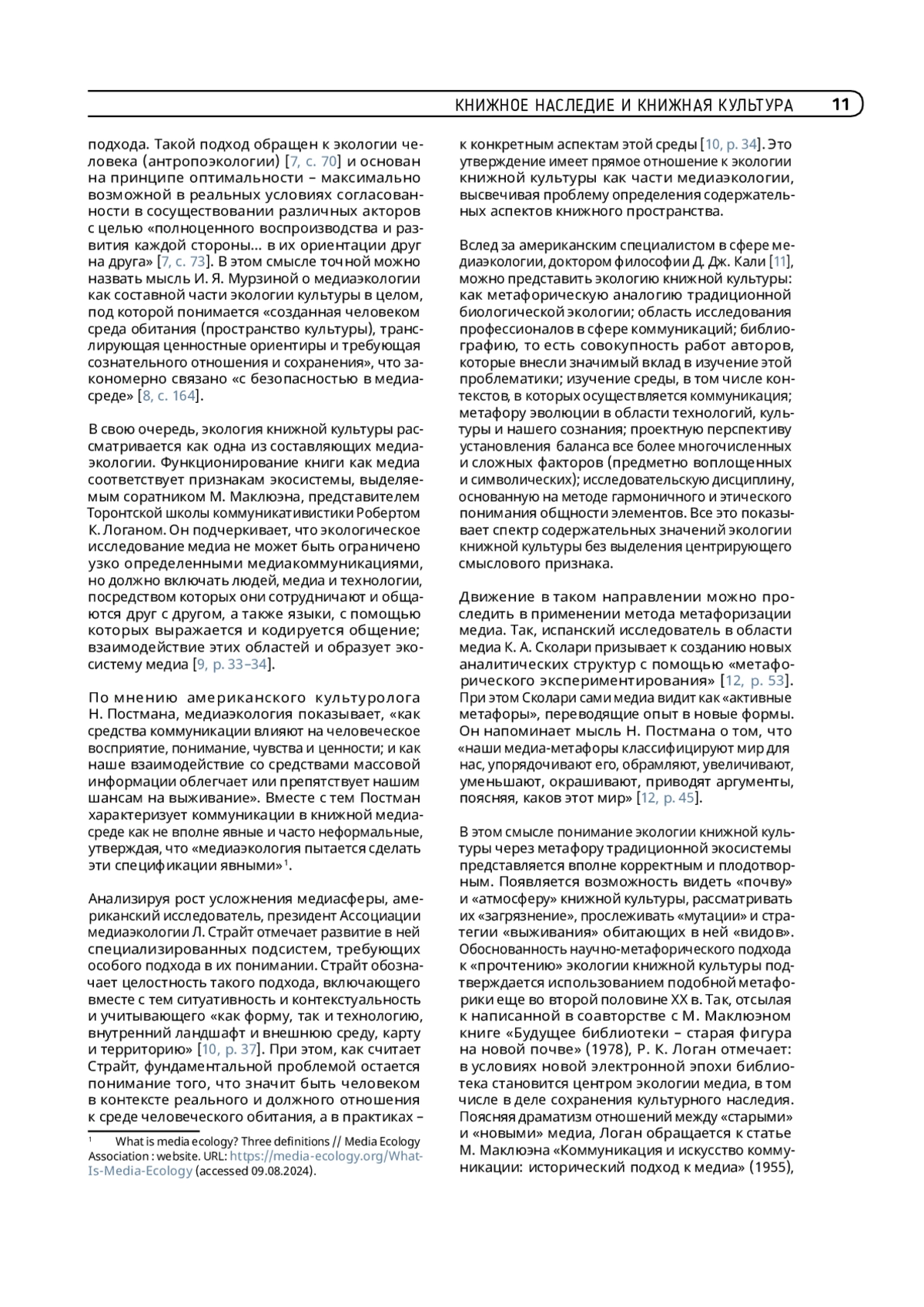 11. Cali D. D. Mapping media ecology: introduction to the field. New York : Peter Lang Publ., 2017. 282 p.