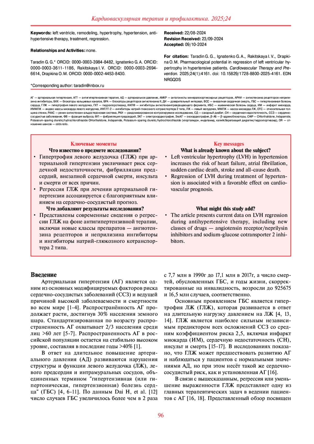 23. Павлова О. С., Ясюкайть Н. В., Барбук О. А. и др. Ассоциация показателей воспаления и гематологических индексов с гипертрофией левого желудочка у пациентов с артериальной гипертензией. Артериальная гипертензия. 2024;30(1):108-20. DOI: 10.18705/1607-419X-2024-2405