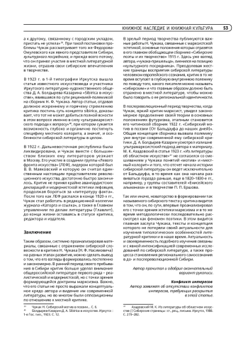 Литературная и идеологическая рефлексия по поводу истории сибирской словесности начала проявляться еще в раннем периоде сибирской ссылки Н. Чужака, когда его мировоззрение было оппозиционным по отношению к региональной критике. Но постепенное изучение и погружение в сибирский материал, попытки понимания специфики литературы далекого края начали формировать не только позицию «пришельца-чужестранца», но и «культурного посредника». Принципиальным стало осмысление Н. Чужаком сибирской литературы в контексте марксистской теории, что наложило особый отпечаток на методологию и концептуальную составляющую его критических текстов. Несмотря на явную тенденциозность основных положений критика, его несомненной заслугой мы видим то, что он впервые поставил вопрос о необходимости изучения сибирской словесности как феномена поэтики. Критическое творчество Н. Чужака на темы сибирской литературы, осмысленное нами в системе, представляется как своего рода метатекст, выявляющий и определенную эволюцию, и устойчивые типологические черты, характерные для разных периодов его творчества.
