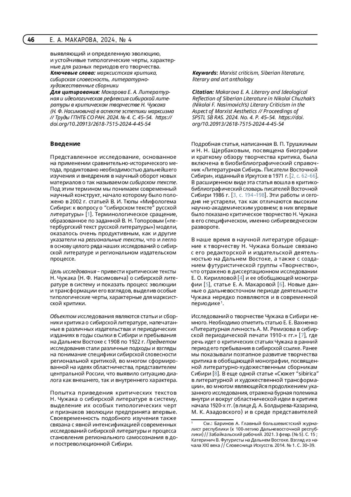 1. Тюпа В. И. Мифологема Сибири: к вопросу о «сибирском тексте» русской литературы // Сибирский филологический журнал. 2002. № 1. С. 27-35.